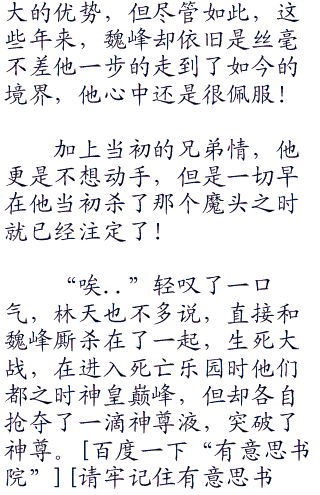 林天看着魏峰,神色复杂,系统虽然有些坑爹,但不可否认的是他拥有莫