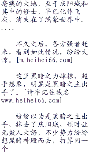 剩下一些强者纷纷祭出法宝,拼命防御逃窜,然而毁灭之力太过可怕,根本无从阻挡,仅仅是片刻之间,所有的法宝全毁,整个庆阳城被无尽毁灭之力淹没,吞噬,什么都没有剩下。