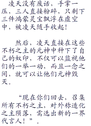 虽然之前有鸿蒙造化青莲替他挡下了大部分的攻击,但还是让其身受重伤,短时间内是不可能与凌天战斗了。