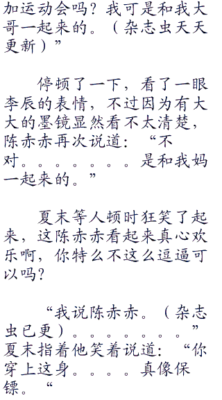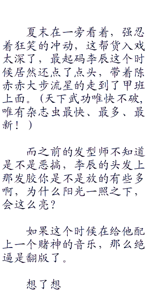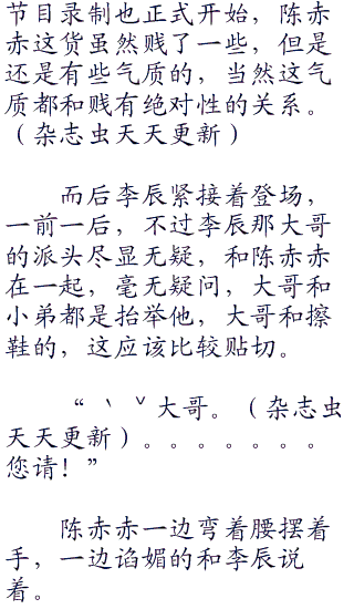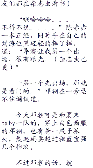 陈赤赤顿时一脸郁闷的喊道:“导演,怎么还是入场,难道让我们穿着这身来参