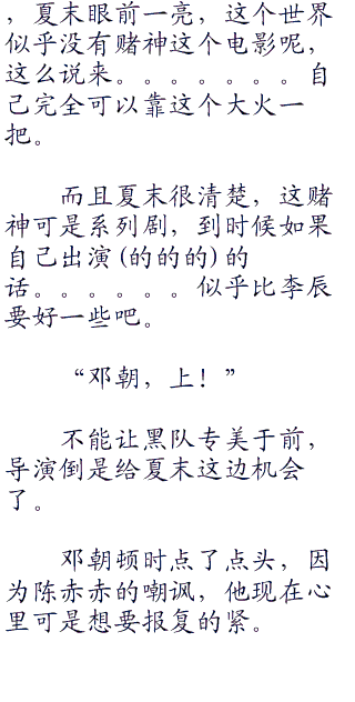 导演的声音落下,一众人再次疑惑了,今天的导演是怎么了?说话怎么都怪怪的?