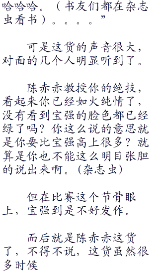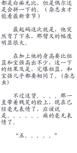 在宝强已有动作的时候,一众人就开始大呼小叫了起来,不因为别的,宝强一下到底,虽然表情有些不太自然,但是这功夫果然不是百练的。