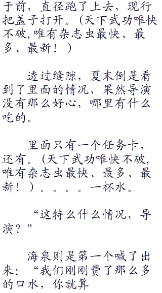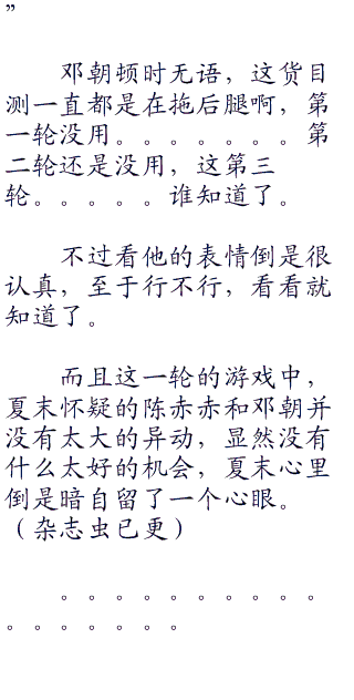 “我说小朝,你还是把你自己弄好把。。。。要是在被淘汰,你就真的没有用了。”