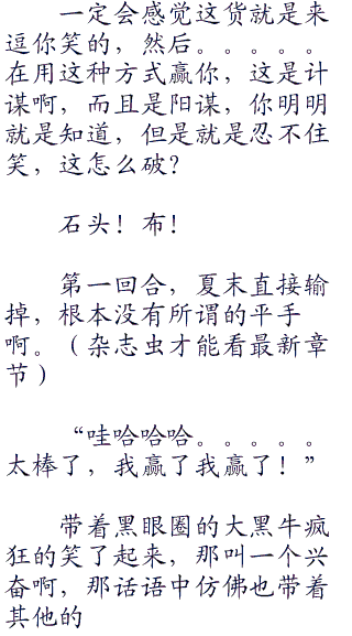 然后。。。。。抱着身旁的羽凡狂笑不止,羽凡同样如此,真心看不出来,刚刚那冷酷的样子是不是装出来的?
