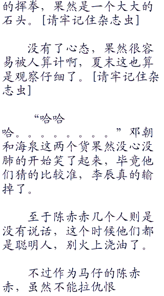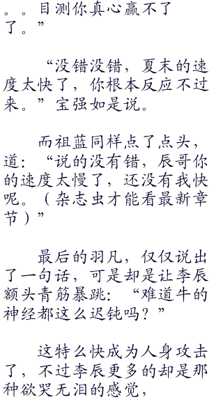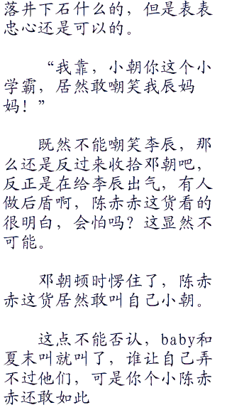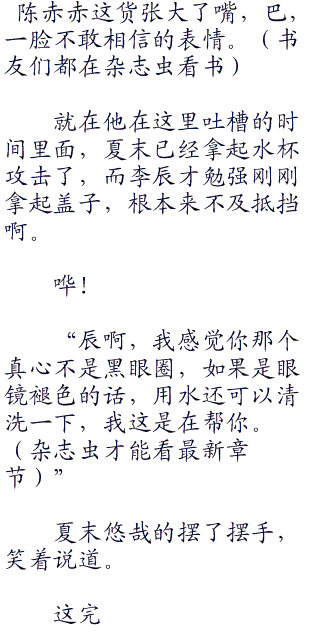 当然这说赢的原因也很简单,李辰虽然没有泼到夏末,但是陈赤赤中招了啊。
