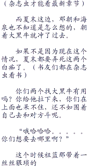相比较邓朝和海泉的摇头晃脑,对面的动作明显要夸张多了,祖蓝干脆就转过身来,电动小马达见过吗?让人无语中。