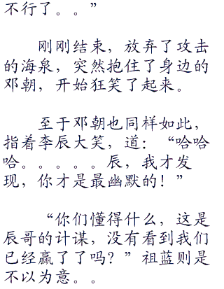 或者说。。。。。他的眼神很怪异,因为这个时候他在不断的挤眉弄眼,因为他现在的位置,李辰他们看不到,只有夏末一个人可以看得见。