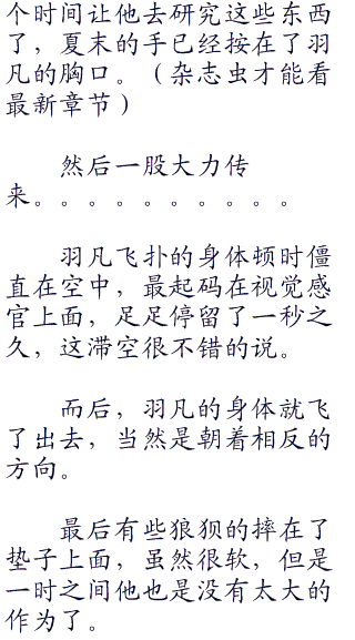 羽凡一个飞扑,这个情况,就要好好的利用自己的重量,来一次大大的冲撞。