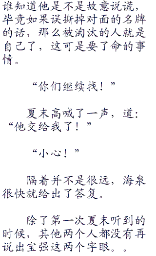“哈哈哈。。。。。夏末,这次你们完蛋了,朝被淘汰之后,就是你了,获胜的一定是我们。”
