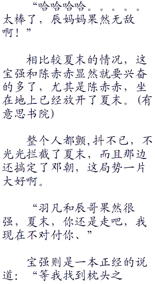 此时三个人的状态已经完全不同了,开始的时候那么得意洋洋,现在祖蓝一脸的惊慌,宝强则是凝重,而陈赤赤倒是有些幸灾乐祸的意思。