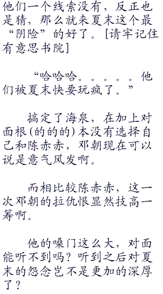 听到海泉也这么说,邓朝顿时一身冷汗啊,这夏末。。。。。