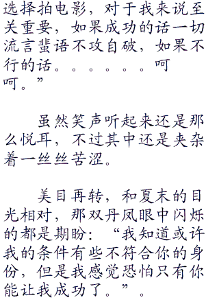 在加上现在夏末的名气,已经要超越棠嫣了,虽然夏末的作品偏少,但是无一不是经典之作,在加上跑男的让夏末的名气再次暴增,这也就是可以理解的事情了,要不然怎么会有这么多人想要寻找夏末合作呢?