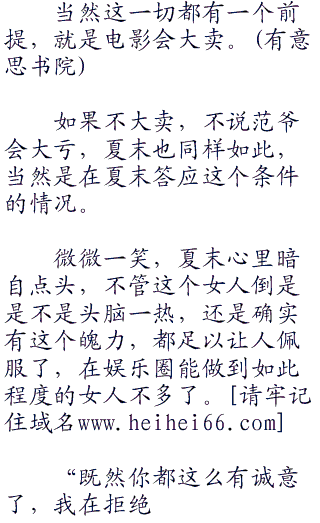 旋即范爷似乎在做什么决定一样,咬了咬银牙,道:“这次电影的票房,我给你一成!”