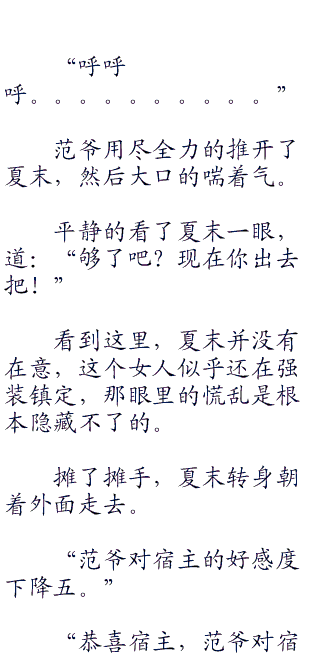 刚刚走了一步,范爷就软到在了夏末的身上:“快点。。。快点。。。。。要不来及了。”