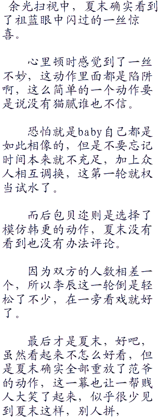 这个动作对于夏末来说问题不是很大,对身体的掌控能力来说,没有人可以比得上夏末,不要说翻眼皮了,更夸张的动作夏末都没有任何的问题。