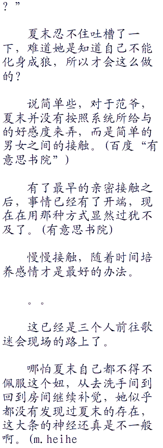 夏末无奈的摇了摇头,这个小妞完全没有提前告诉自己的意思啊,看起来今天还真的不能睡觉了。