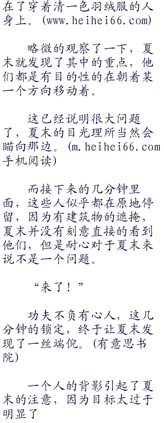 这一路走过来,夏末发现了大量穿着羽绒服的男人,不光光是在城门口看到的那些,仿佛这个古城里面全部都有他们的人。