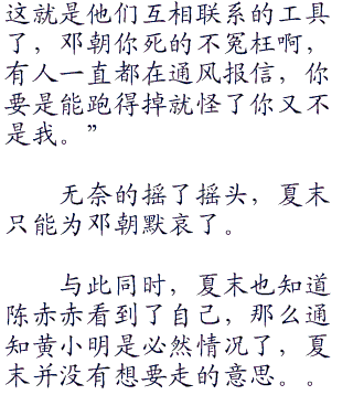 对此夏末怎么给出答案?夏末虽然心里有些断定了,但总归是没有抓到现行,还是等之后出现再说吧。
