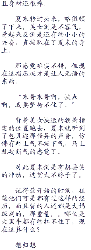 依照祖蓝的这个情况来看,你让他背着一个和他体重差不多的大妈,然后在转三圈,要是能完成就真的出鬼了。