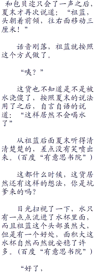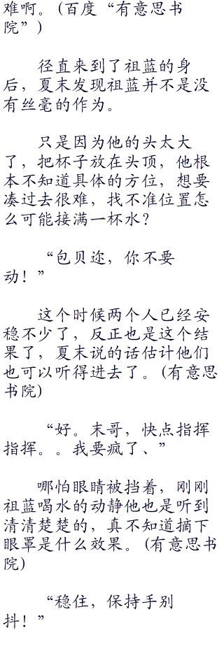 此刻的祖蓝哪有心情去说话了,在说话还要喝水。。而且这水又不是茶水,还有些冰冰凉的,这天气。不是夏天好吗?