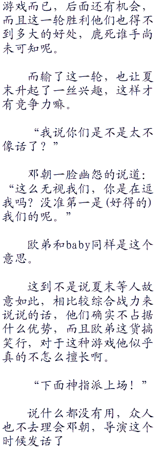 邓朝顿时不干了,怒视着欧弟,差点就要扑上去和他决一生死了。