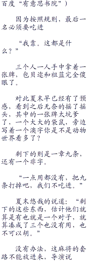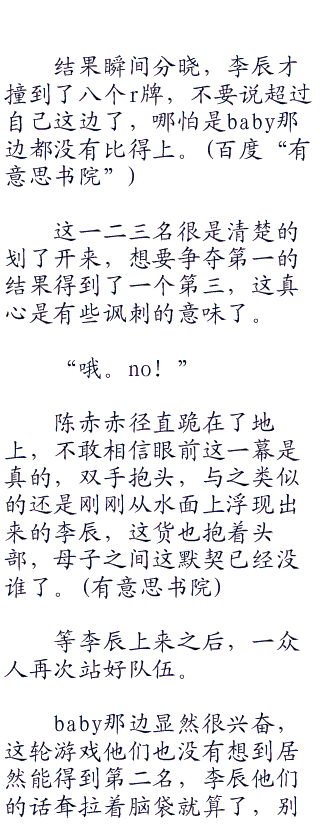 “哈哈哈,小包你还真够悲催的,最后一名你可以洗洗睡了。”
