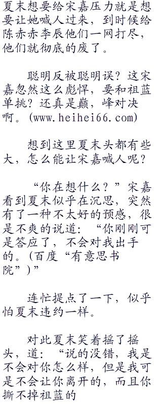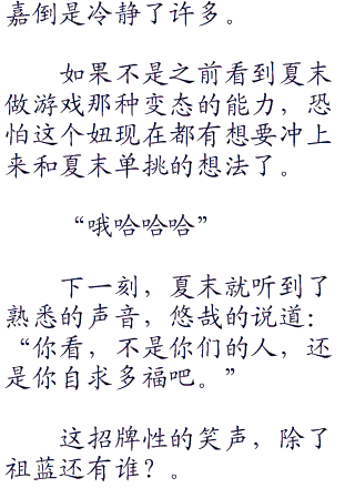 宋嘉的话让夏末感觉到好笑,祖蓝确实是男人没错,但他可不是一般的男人,最喜欢对女人出手了。