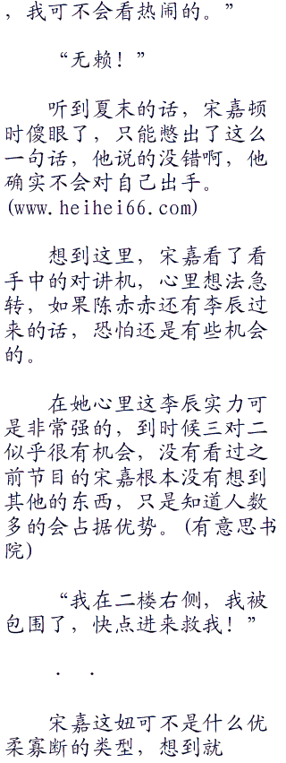 看了一眼宋嘉那似懂非懂的表情,夏末悠哉的解释,道:“每一期祖蓝的对手都是女人。。或者是陈赤赤。”