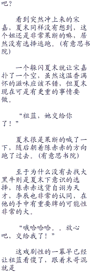 刚刚宋嘉和夏末那戏剧性的一吻,其实也让这个妞有了一些其他的想“四零三”法,就是报仇。。她是想要在亲夏末一下吗?