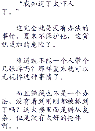 自己还能怎么样,夏末在这里,你让我去帮你?我还没有活够啊。