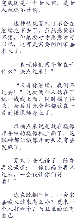 正全速奔跑的宋嘉突然发现面前一花,随后就看到夏末挡在了自己的面前。