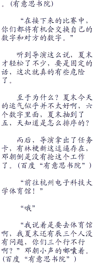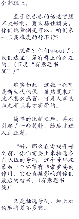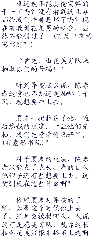 笑归笑,人都已经到齐了之后,美男团的几个人在baby的带领下走到了台下,和夏末等人对立而战。