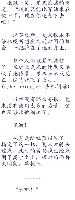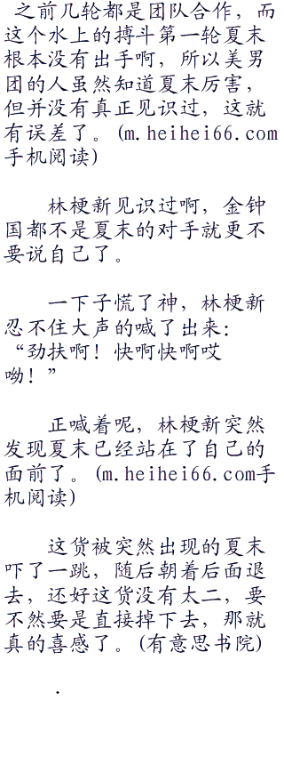 果然和夏末所想的一样,宋嘉你都搞不定,现在你想要对付林梗新,还是洗洗睡了吧,正好下面的是水。