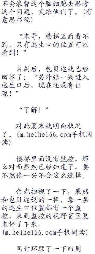 这个大厦里面监控太多了,有的还藏在一些隐蔽的位置,夏末可