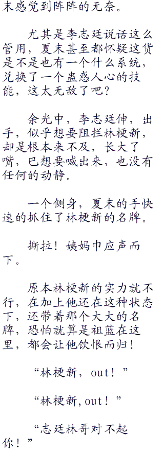 下意识的林梗新就想要后退,之前那些表情还有气势汹汹的样子只不过是装出来的罢了,这和夏末放对,顿时就不攻自破了。