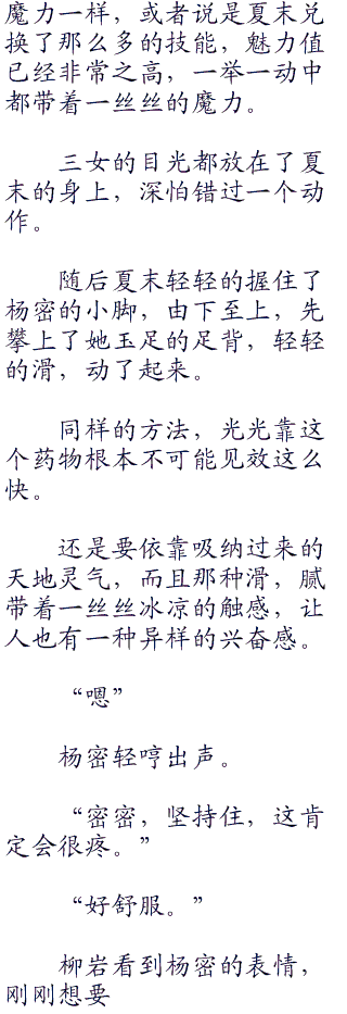 高园园和范爷看到夏末一副无奈的样子都笑了起来,虽然她们也想要体验一下那种舒畅的感觉,但现在可不是时候了。