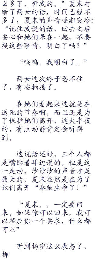 这种危机情况之下,她们只能把夏末当做依靠了。