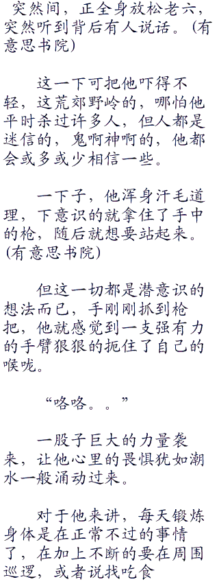 站在树荫底下的老六神情有些自得,而且还带着一丝丝的猥琐,和刚刚那一本正经的样子完全的不同。