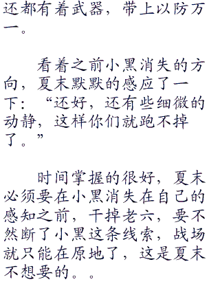 随后两女听从了夏末的安排,轻轻的在地上爬动着,这样发出声音的可能性最小,只要小心一些,是不会被发现的。