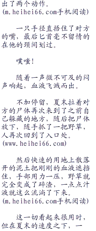从藏身的地方走出来,夏末快速的扑了过去。