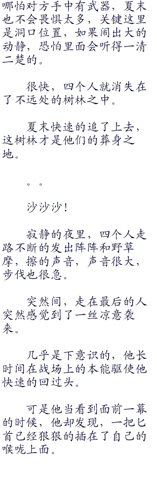 而那块大石头也算是帮了大忙了,可以很好的隐藏著夏末的身形。