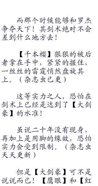 在其下半身,并没有看到所谓的双脚,取而代之的是二十年前闻名天下的两把名剑、