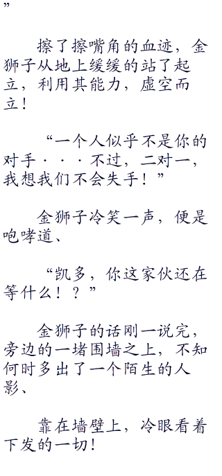 “金狮子,当你在用背后背对我的瞬间,就是你的败北啊——”