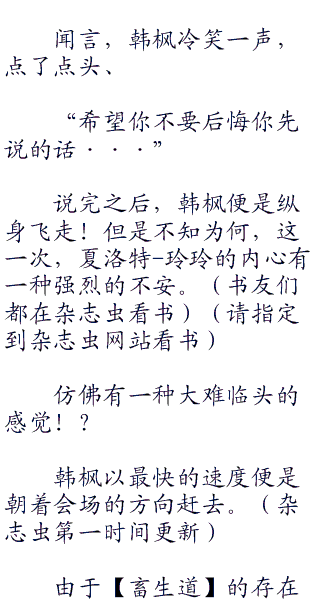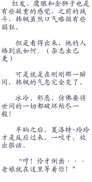 “你别慌,夏洛特-玲玲!在场的这些人,我放过了谁都唯独不会放过你!你触碰了我最不该触碰的东西!”