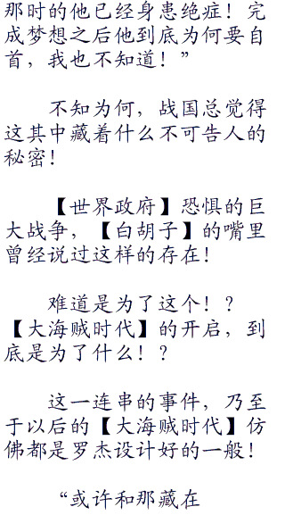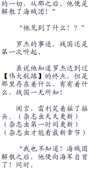 雷利微笑着看着战国,仿佛又想起了当初和罗杰闯天下的时候了。