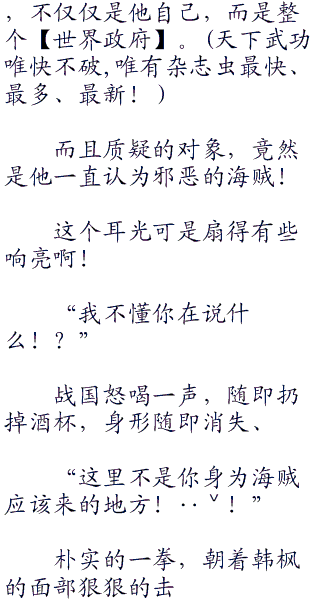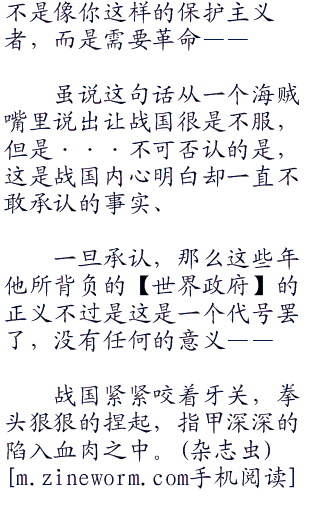 “战国,身为【智将】的你不可能不知道我为什么会出现在这里的吧!?你和我都是老对手了,你认为凭借【cp0】那几个渣渣能够瞒天过海!?”