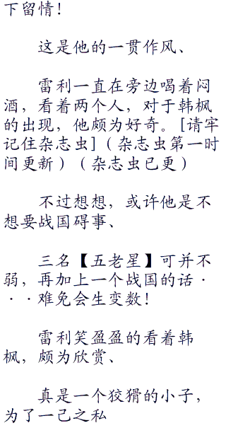 韩枫哈哈大笑的喝了一口酒,随即说道。