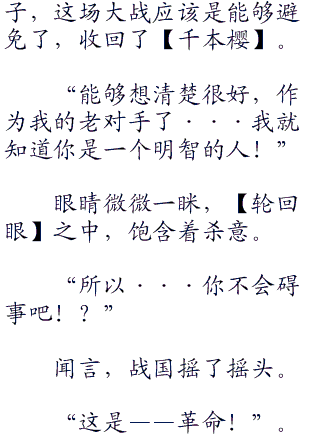 “到底是他们认为他们自己太厉害了呢!?还是他们太低估我了呢!?这件事你应该没参加吧!?不然的话···恐怕还要麻烦!”