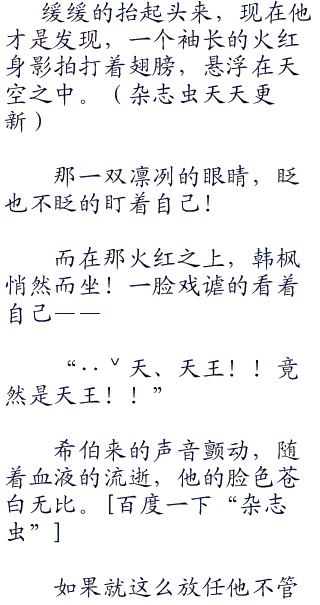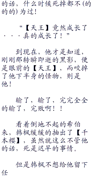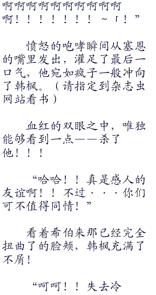 沐浴着漫天的血雨,韩枫残忍的笑容缓缓的勾勒而出。