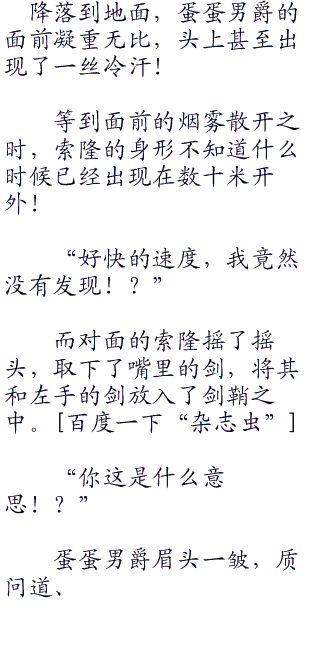 索隆一早就瞄上了蛋蛋男爵,他知道,此人也是一名剑士,虽说还存在另一人,但是他恐怕厉害的是其能力!